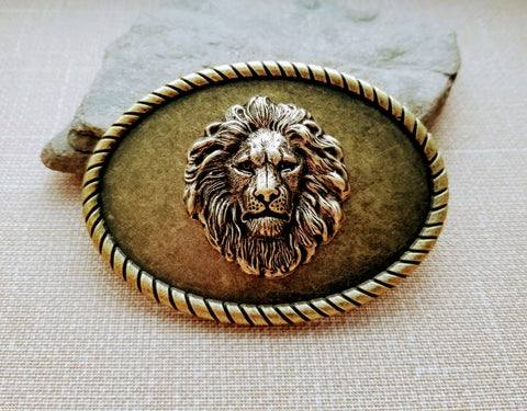 Handmade Oxidized Brass Steampunk Lion Belt Buckle