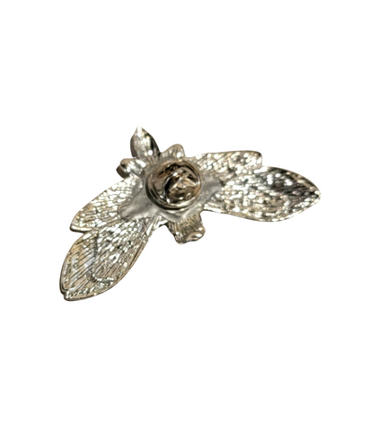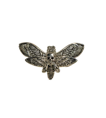 A detailed antique silver skull moth has been set on a high quality silver setting with a brooch pin on back. Your pin will come in a velvet pouch for gifting and storage.