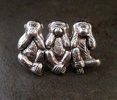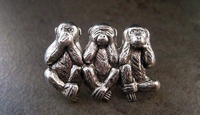 Handmade Speak Hear See No Evil Monkey Steampunk Tie Tack Lapel Pin Brooch