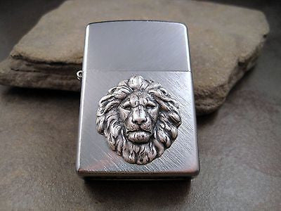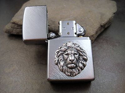 A detailed oxidized brass lion head has been set upon a high quality silver lighter. Your lighter will need to be filled with lighter fluid when you receive it as it can't be full for shipping. Your lighter will come in a gift box tied with a bow.