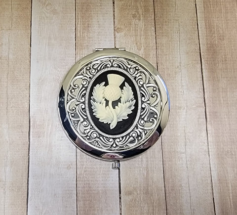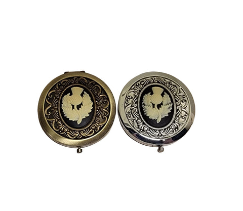 Handmade Bronze Or Silver Scottish Thistle Cameo Compact Mirror