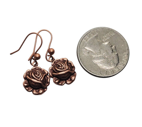 Handmade Dainty Oxidized Rose Gold Rose Earrings