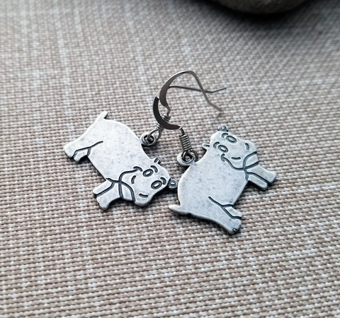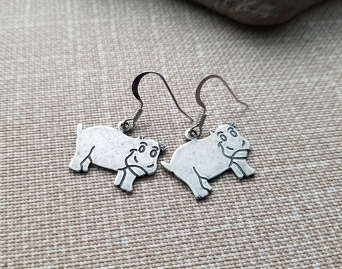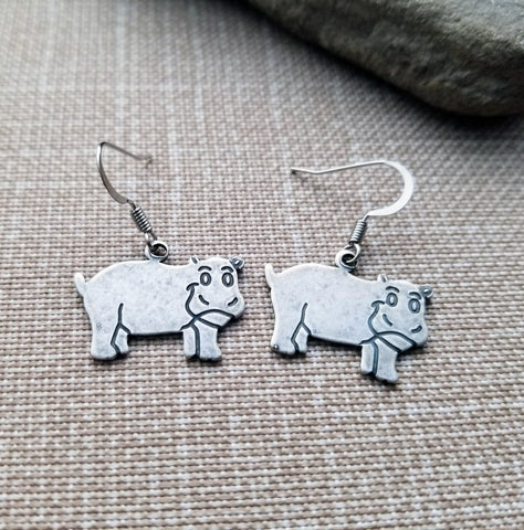 Detailed Oxidized sterling silver hippos suspend from high quality silver plated brass ear wires. Your earrings will come in a velvet pouch for gifting and storage.