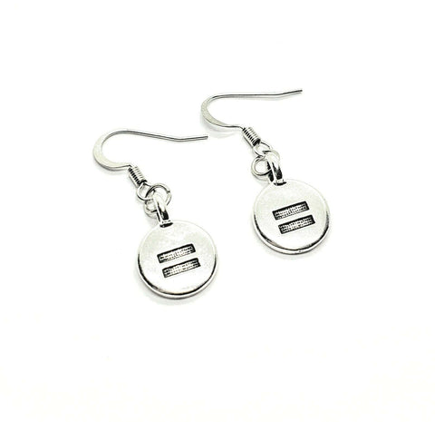 Very nice quality silver equal rights charms suspend from high quality lead and nickel free silver plated brass ear wires. Your earrings will come in a gift box or pouch or pouch tied with a bow.