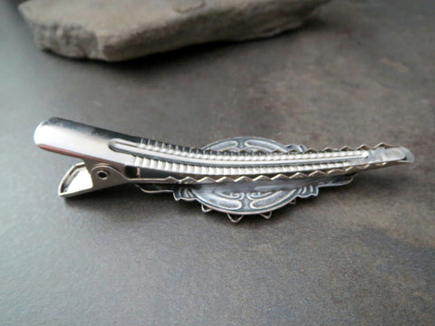 *High quality silver plated brass hair clip.