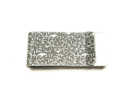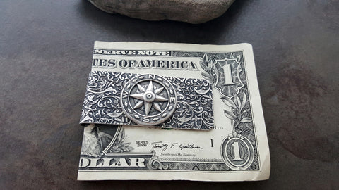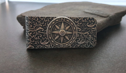 Handmade Oxidized Silver Embossed Brass Compass Money Clip