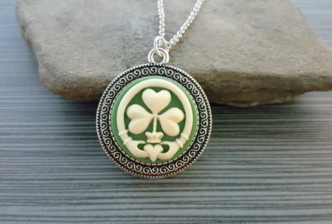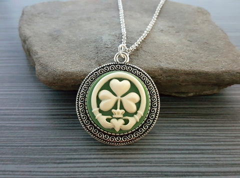 Handmade Claddagh Shamrock Cameo Necklace