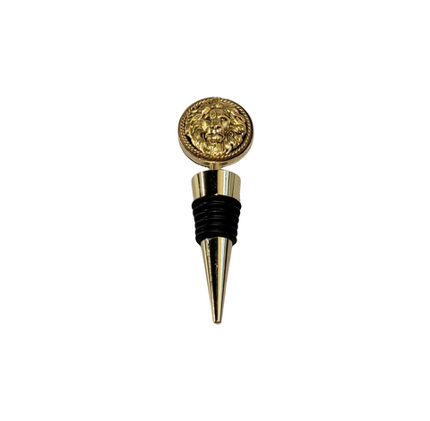 A beautiful golden setting and an oxidized gold lion is set upon a high quality gold wine bottle stopper. Your stopper will come in a nice velvet drawstring pouch for gifting and storage