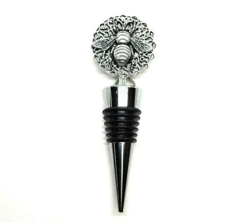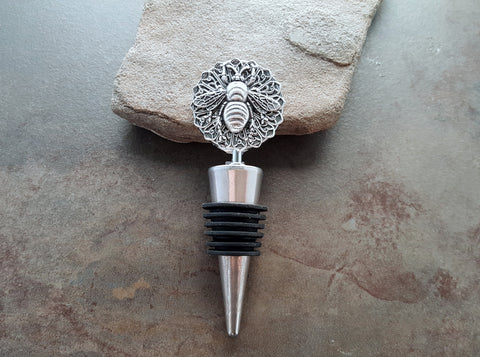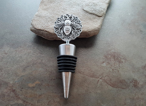 Handmade Oxidized Silver Bee Wine Bottle Stopper