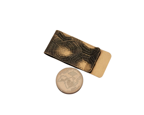 Oxidized Brass Spider Web Embossed Bat Money Clip